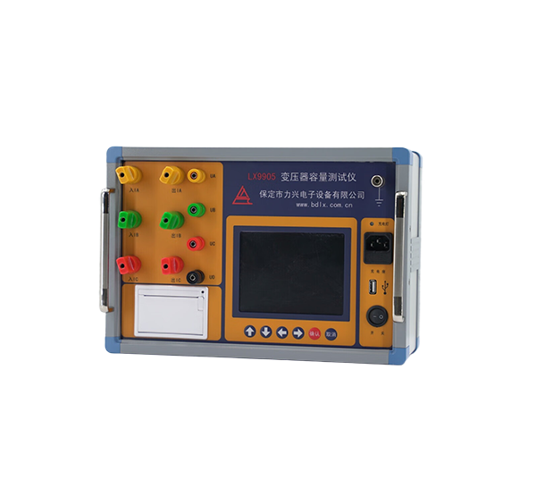 ? 容量的測量:儀器內置可充電鋰電池,本身可輸出三相正弦波逆變電源,輸出電壓自動調節(jié),具有軟啟、軟停功能,無需任何外部電源可實現(xiàn)配電變壓器容量的測量和型號的判斷,同時顯示變壓器阻抗電壓和折算到額定溫度、額定電流下的負載損耗。