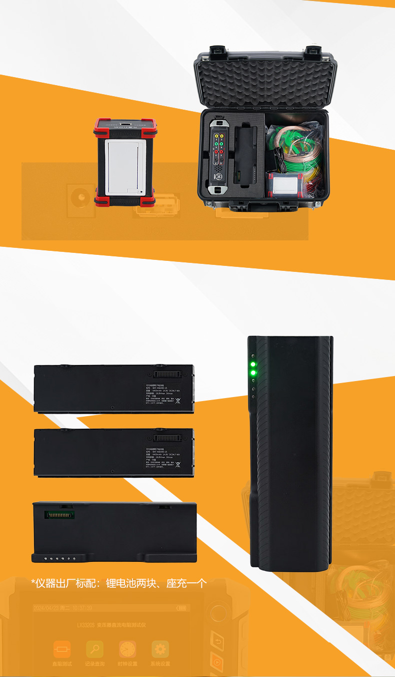 1、鋰電池供電,且電池可更換,并可選配多塊電池與電池座充,滿足現(xiàn)場(chǎng)連續(xù)測(cè)試。